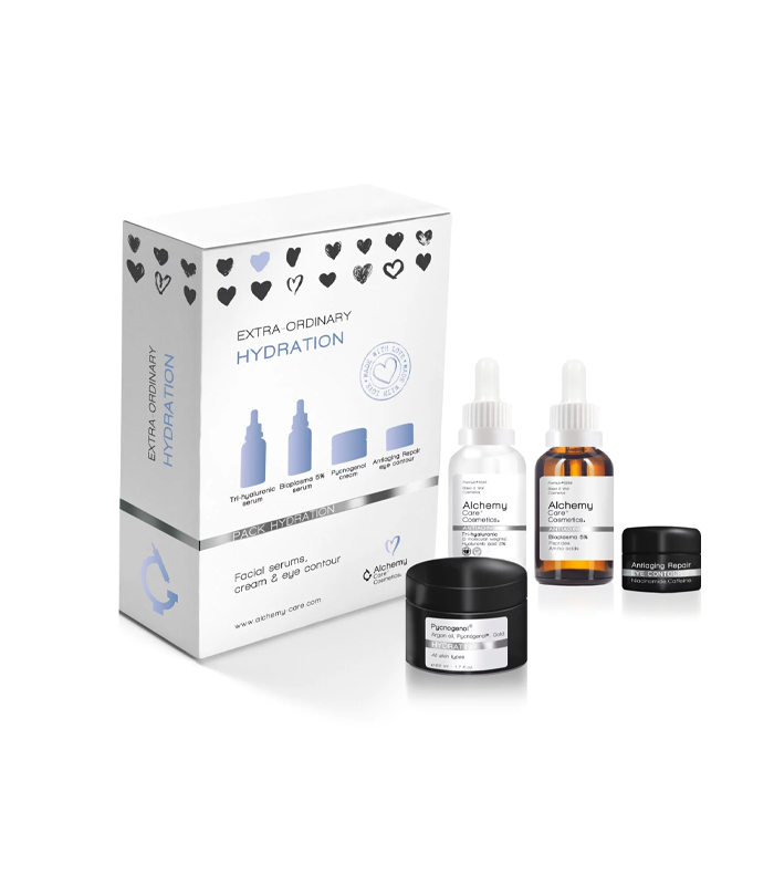Kompletna HYDRATING rutina koja se sastoji od 4 proizvoda: dnevni serum, noćni serum, dnevna/noćna krema i kontura oko očiju protiv starenja. Idealno za dubinsku hidrataciju, povećanje zadržavanja vode u koži i zaštitu iznutra nakon čišćenja kože.