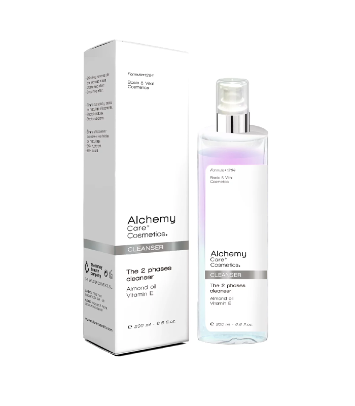 The Alchemy – The 2 Phases Cleanser je dvofazni odstranjivač šminke za lice i oči koji uklanja čak i najtvrdokorniju šminku bez ostavljanja masnog efekta na koži, sa svježim i svilenkastim završetkom. Njegovi ključni sastojci uključuju bademovo ulje i vitamin E.