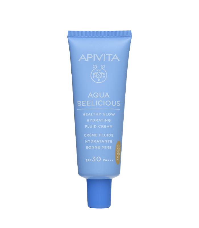 APIVITA AQUA BEELICIOUS all in one dnevna krema koja pruža hidrataciju, zaštitu od UVA/UVB/BLUE LIGHT zračenja uz SPF30 i ujednačavanje tena uz toniranu pokrivnost neutralne nijanse.