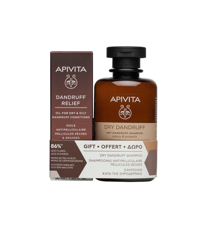 Apivita Dry Dandruff set Ulje za uklanjanje peruti 50 ml + Šampon protiv suhe peruti 250 ml