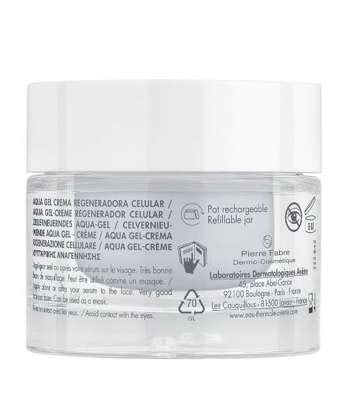Aqua gel regenerirajuća gel-krema sadrži koncentraciju hijaluronske kiseline i niacinamida koji stimuliraju rast stanica. Lagane teksture, nježno cvijetnog mirisa, daje osjećaj svježine i pruža ugodu koži, Testirano na svim tipovima kože, čak i na osjetljivoj.
