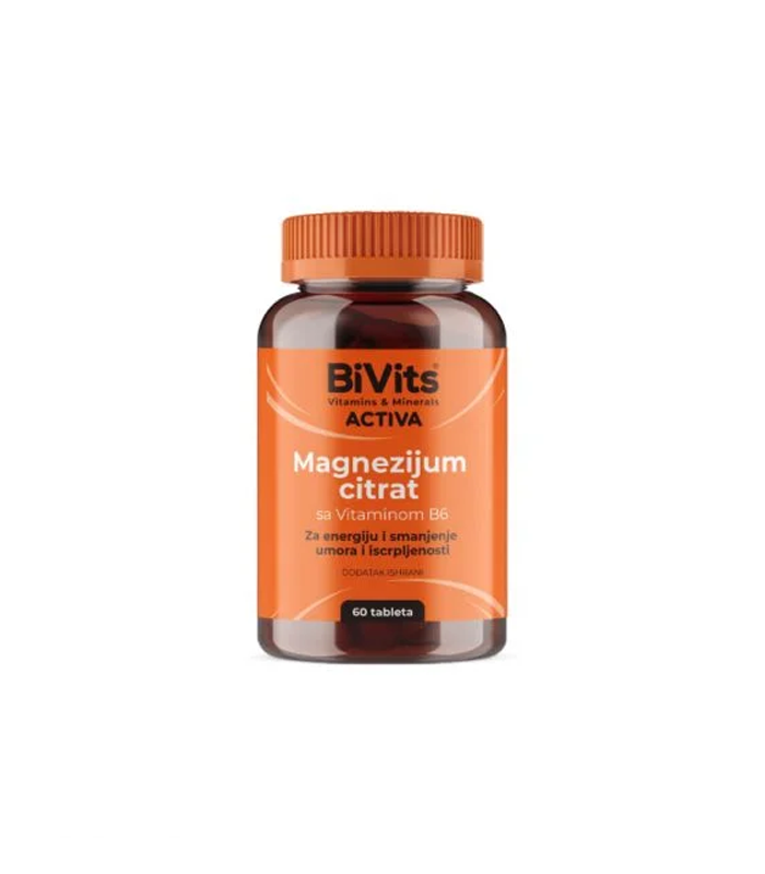 BiVits ACTIVA Magnezijum citrat sa vitaminom B6 je formula koja obezbjeđuje brzo dejstvo magnezijuma, oslobađa od umora, bolova i grčeva u mišićima. Magnezijum u kombinaciji sa vitaminom B6 doprinosi boljem raspoloženju i normalnoj funkciji nervnog sistema.