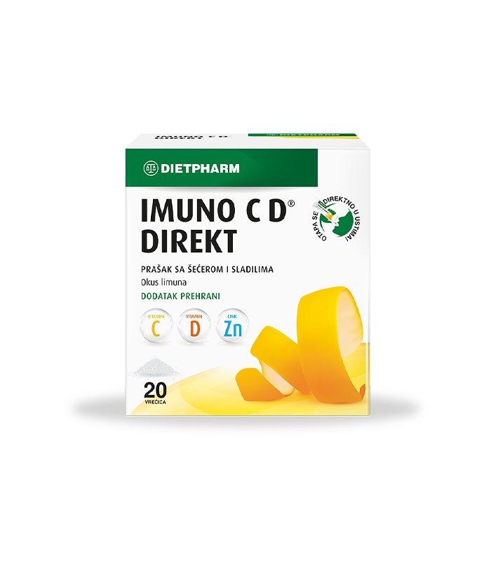 Imuno C D ® kapsule namijenjene su osobama koje imaju oslabljen imunitet, osjećaju umor i iscrpljenost. Kapsule sadrže Vitamin C u obliku kalcijum askorbata koji blago djeluje na sluznicu želuca i ima dobru bio raspoloživost, kao i cink u obliku glukonata koji se lako apsorbuje.
