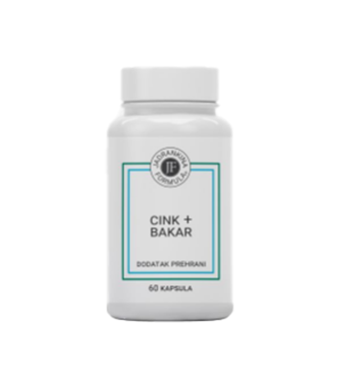 Cink+bakar kaspule iz linije Jadrankina formula dodatak su prehrani s cinkom, bakarom te prebiotikom inulinom kao aktivnom komponentom koja pospješuje apsorpciju.