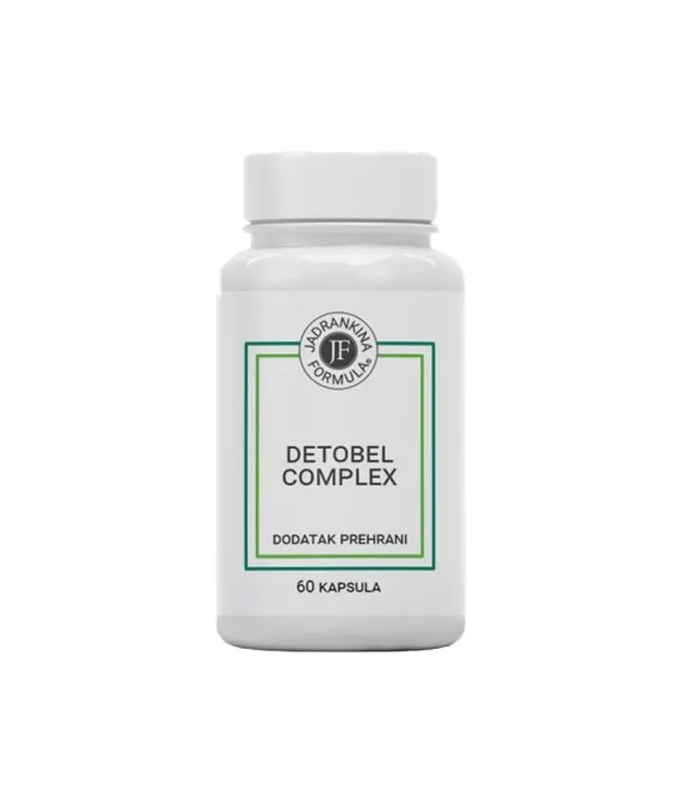 Jadrankina formula Detobel Complex kapsule dodatak su prehrani koji sadrži kolin u obliku bitartarata, suhi standardizirani ekstrakt lista artičoke s 2% cinarina, suhi standardizirani (80% silimarina) ekstrakt sjemenki sikavice, suhi ekstrakt lista breze i vitamin B6.