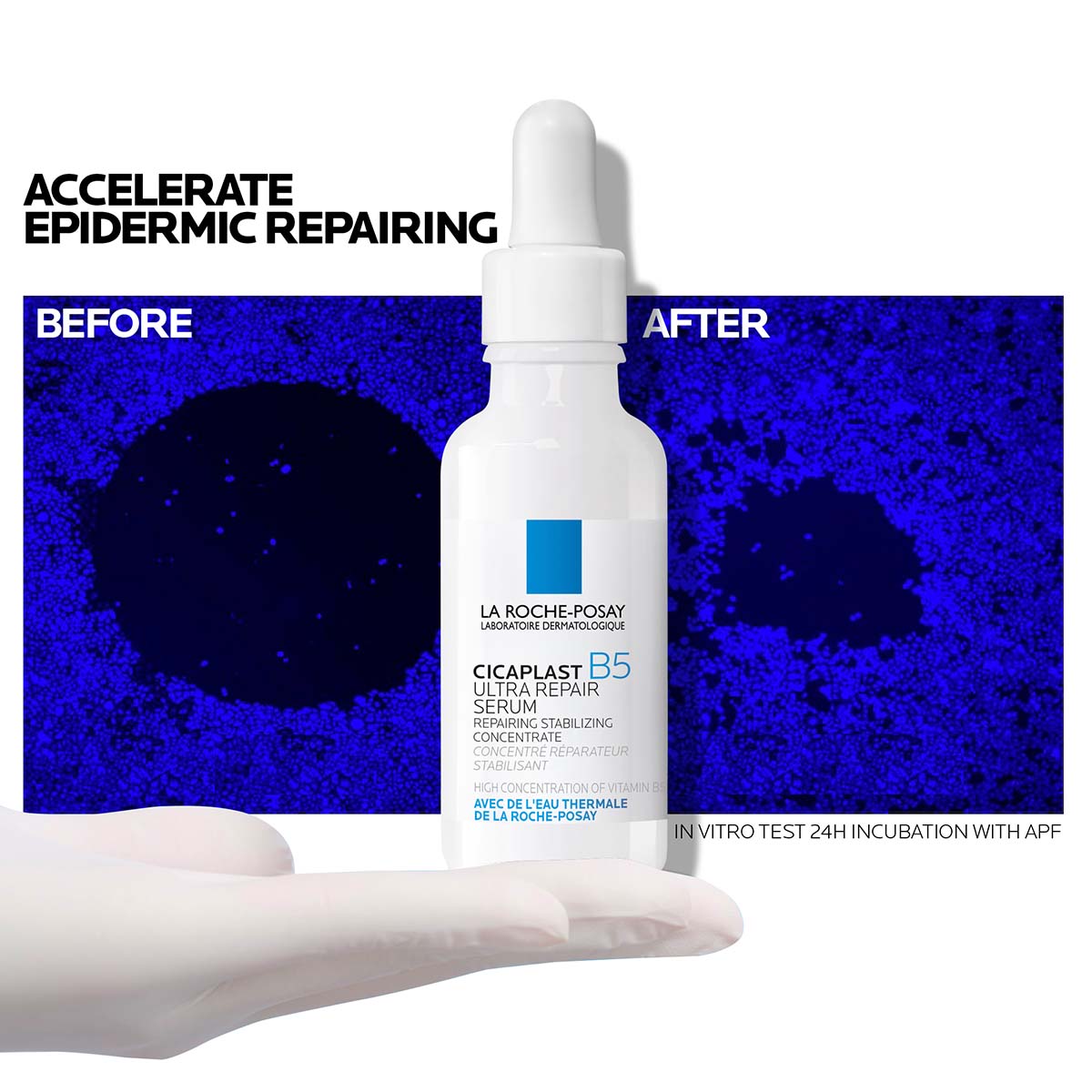 Ekskluzivna formula “poput barijere” stvara tanki sloj na koži kako bi se zaštitila od vanjskih agresora i pospješila bolji oporavak kože. La Roche-Posayev Cicaplast serum B5 pomaže ujednačavanju tona kože i poboljšanju teksture kože za zdrav ten. Lagana, nemasna tekstura seruma odmah vlaži i umiruje kožu.