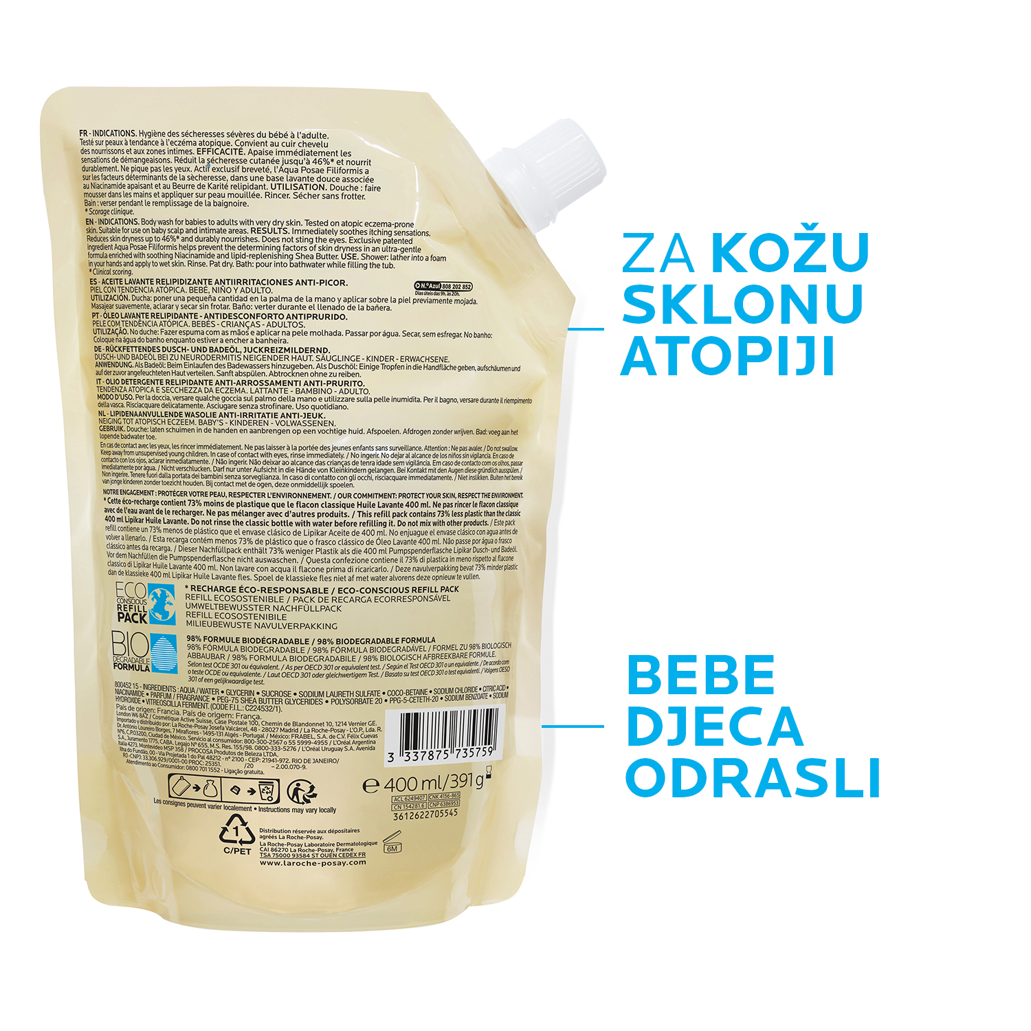 La Roche Posay Lipikar AP+ ulje za čišćenje 400ml (Eco Refill pakovanje)