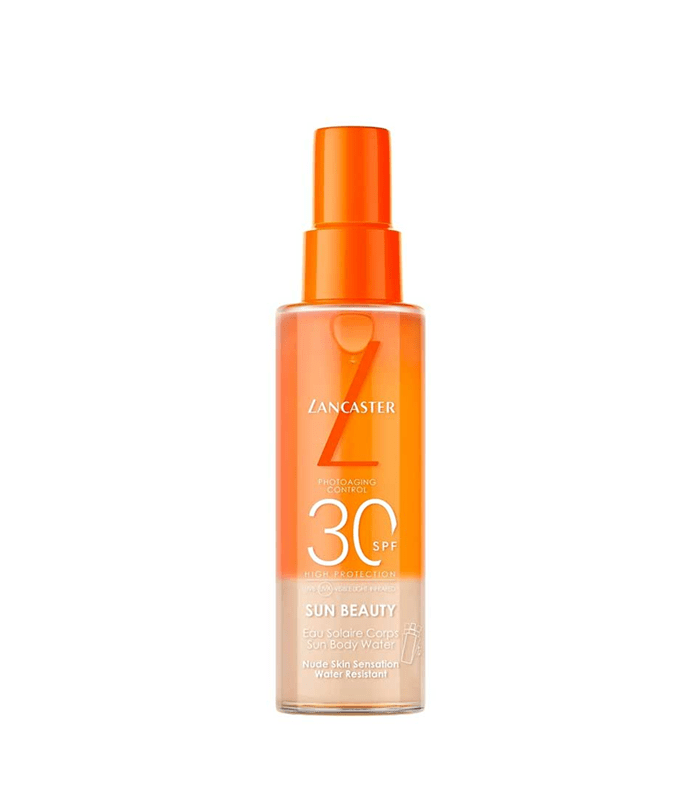 Zaštitite svoju kožu više od tradicionalne UV zaštite uz Sun Beauty Sun Body Water SPF30 od Lancastera – brenda broj 1 u segmentu prestižne njege od sunca u Europi1. Izloženost sunčevoj svjetlosti odgovorna je za 80 % vidljivih znakova starenja2, proces poznat kao fotostarenje. Budući da UVA i UVB zrake čine samo 10 % sunčevog spektra, naša formula nadmašuje konvencionalne kreme za sunčanje, štiteći i od vidljive svjetlosti i infracrvenih zraka. Naša Full Light Technology™ pruža 10 puta širu spektralnu zaštitu3 za izuzetno široku obranu od sunca. Formula također sadrži naš Tan Activator Complex, koji potiče proces tamnjenja kako bi se postigla legendarna zlatna preplanulost u upola kraćem vremenu izloženosti suncu. Također pomaže u popravljanju oštećenja izazvanih suncem zahvaljujući Sun Repair System tehnologiji. Prikladna za sve tipove kože, ova ultralagana, nevidljiva dvofazna vodica za sunčanje lako se nanosi i brzo upija. Nemasna i neljepljiva, ostavlja osjećaj gole kože s „dry-touch“ završnicom. Njena vodenasta tekstura može se nanositi na suhu ili mokru kožu, ostavljajući je osvježenom, hidratiziranom i nježno parfemiranom mirisom koji podsjeća na francusku rivijeru.