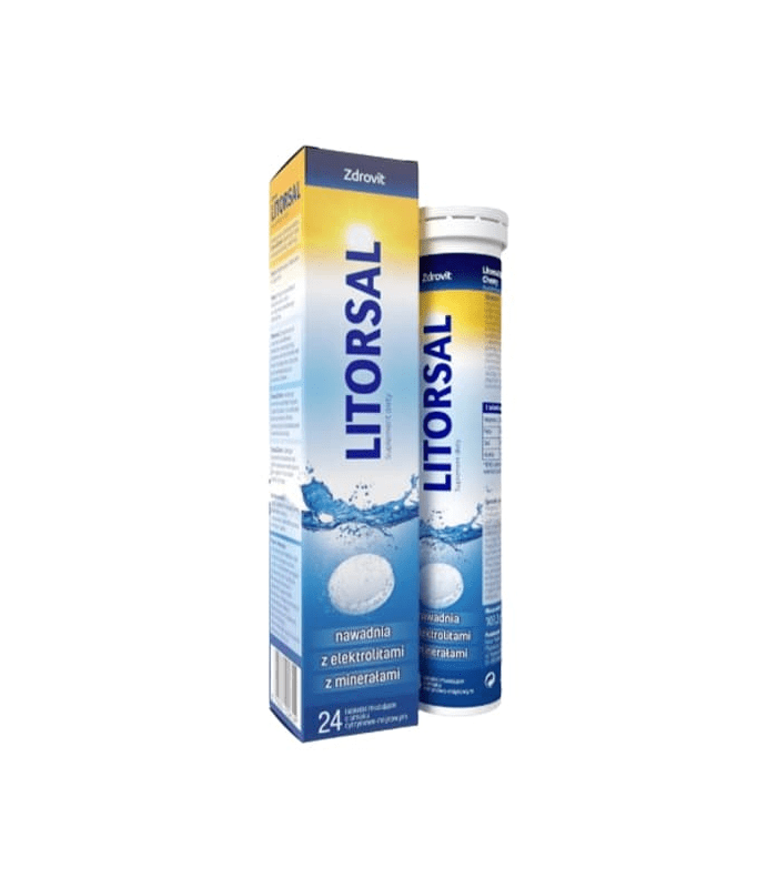 Litorsal šumeće tablete je dijetetski suplement sa vitaminom C, glukozom, natrijumom i kalijumom, koji je namjenjen za pripremanje napitka za nadoknadu tečnosti, elektrolita i hranjivih materija. Vitamin C doprinosi održavanju normalnog energetskog metabolizma, smanjenju umora i iscrpljenosti, zaštiti ćelija od oksidativnog stresa, normalnoj psihološkoj funkciji i normalnoj funkciji imunološkog i nervnog sistema.