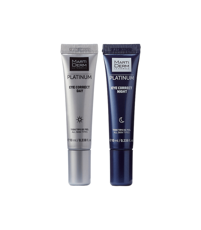 Martiderm Platinum Eye Correct je kombinacija dvije različite formule: Martiderm Platinum Eye Correct Day za posvjetljivanje područja oko očiju i ispravljanje neujednačenosti tona i Martiderm Platinum Eye Correct Night za osvježavanje konture očiju i borbu protiv znakova umora. Kombinacija obje formule pomaže u smanjenju podočnjaka za 67%, smanjenju vrećica oko očiju za 50%, ujednačavanju tona kože za 86% i povećanju sjaja za 45%.