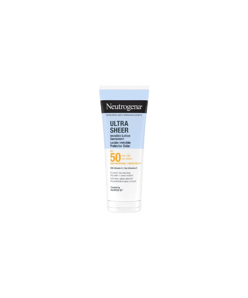 Neutrogena Ultra Sheer Invisible Lotion Sunscreen SPF 50 je ultralagana i brzo upijajuća SPF losion‑krema koja pruža visoku širokospektralnu zaštitu SPF 50 protiv UVA i UVB zraka, obogaćenu Helioplex SL™ tehnologijom za maksimalnu dnevnu zaštitu kože od sunca i utjecaja okoliša. Formula je dizajnirana da se lagano razmaže, ne ostavlja bijele tragove i neklizav osjećaj, što je čini savršenom za svakodnevnu upotrebu na licu i vratu.