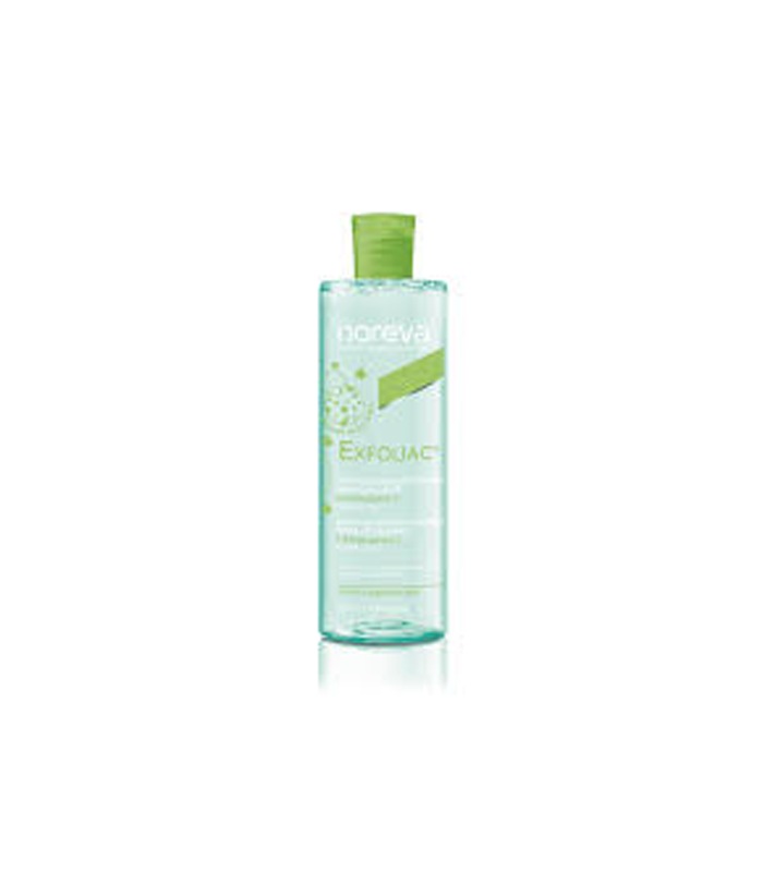 Exfoliac micelarna voda za odstranjivanje šminke. Pročišćava. Namijenjen je za lice i oči. Bez mirisa. Za kožu sklonu nesavršenostima.