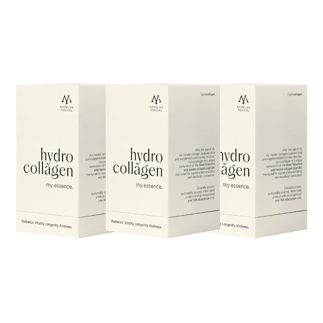 Novelius Medical hydrocollagen se sastoji od potentnih bioaktivnih kolagenskih peptida najvišeg ranga kvalitete, optimiziranih za visoku (iznad 95% do 98%) i rapidnu apsorpciju. Peptidi u hydrocollagenu ne stimulišu samo sintezu svih tipova kolagena u tijelu, nego i hijaluronske kiseline, elastina i glukozamina.