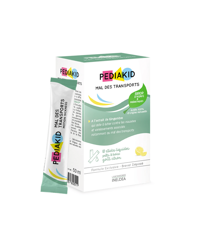 Prva pomoć za brzo sprječavanje mučnine i povraćanja. Budući da djeca često imaju probleme s mučninama i povraćanjem tijekom putovanja (bez obzira je li riječ o prijevozu automobilom, autobusom, zrakoplovom, brodom…) proizvođač PEDIAKID® razvio je formulu koja je posebno prilagođena najmlađima – na bazi aktivnih sastojaka 100% prirodnog izvora. Napitak sadrži prirodne ekstrakte đumbira, metvice, kadulje, sikavice, limuna i naranče, koji učinkovito olakšavaju osjećaje slabosti i mučnine, ujedno ne ometajući normalnu probavu. Svaka vrećica sadrži tekući napitak koji je pripremljen za trenutačnu konzumaciju te ima ugodan okus limuna.