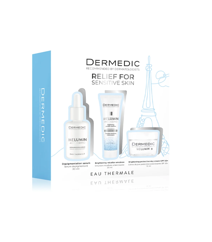 SET MELUMIN Depigmentacijski serum 30ml + Micelarna emulzija za posvjetljivanje 25ml + Zaštitna dnevna krema SPF50+ 15ml