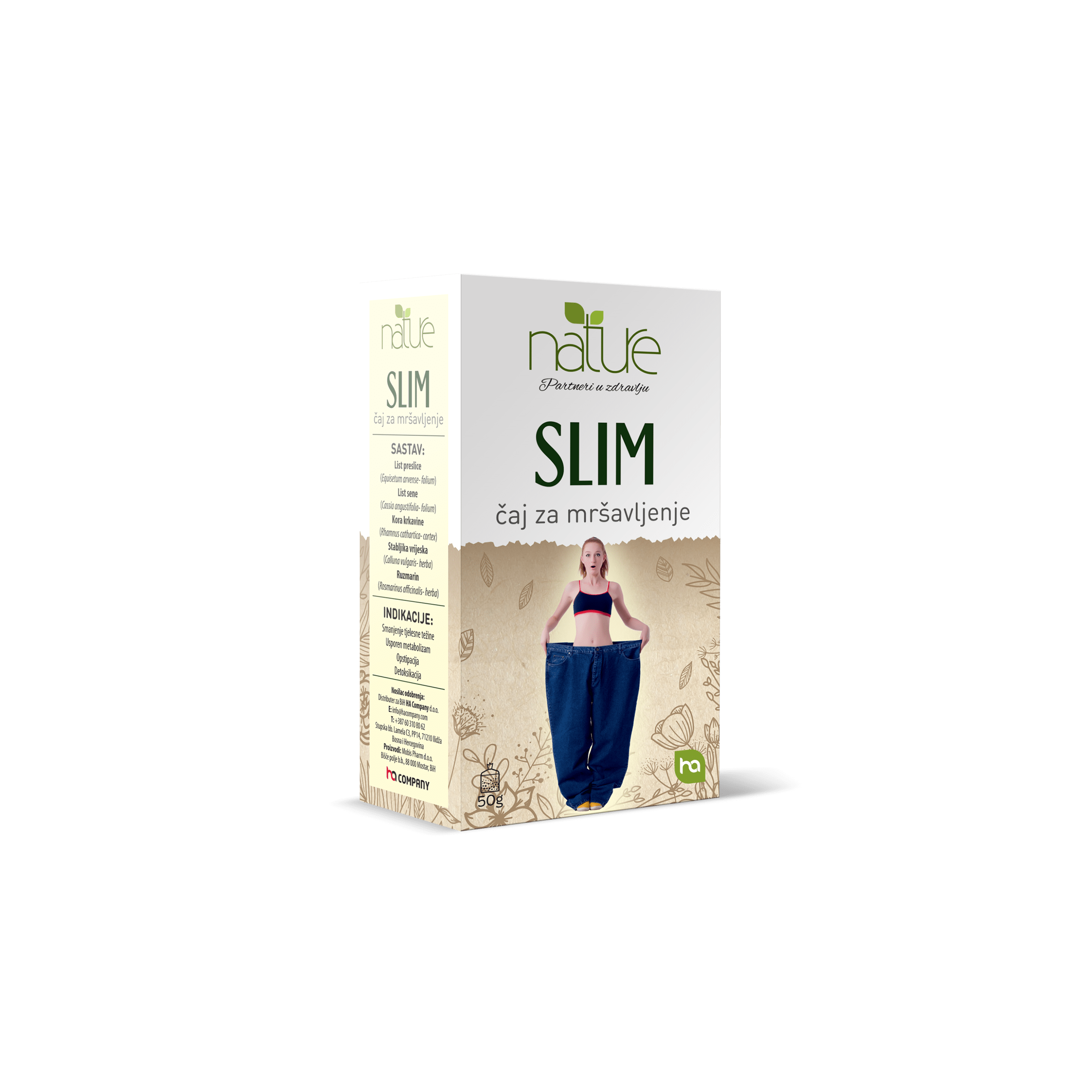 Slim Ha čaj je napitak koji utiče pozitivno na probavu i metabolizam organizma te djelovanjem svojih sastojaka aktivno doprinosi topljenju masnih naslaga, odnosno gubitku viška kilograma.