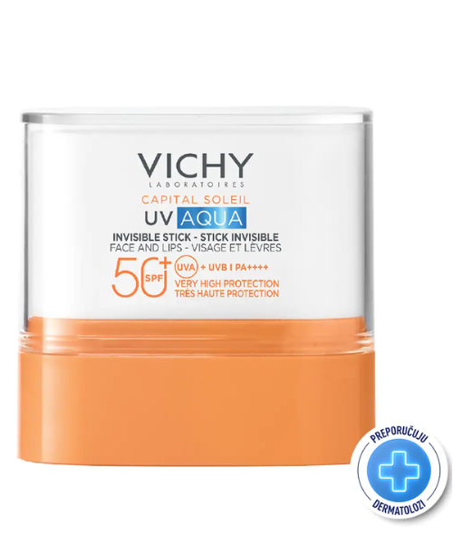 Novi UV Aqua stick je napredna zaštita za lice i osjetljive zone poput područja ušiju i vrata. Hidrira tijekom 24 sata* bez ostavljanja tragova na koži. Brzo se upija, bez osjećaja ljepljivosti, nevidljiv je za sve fototipove i pogodan za upotrebu na osjetljivoj koži. Lagan je, svjež i nevidljiv, baš poput vode. Ispitan pod dermatološkim i oftalmološkim nadzorom.