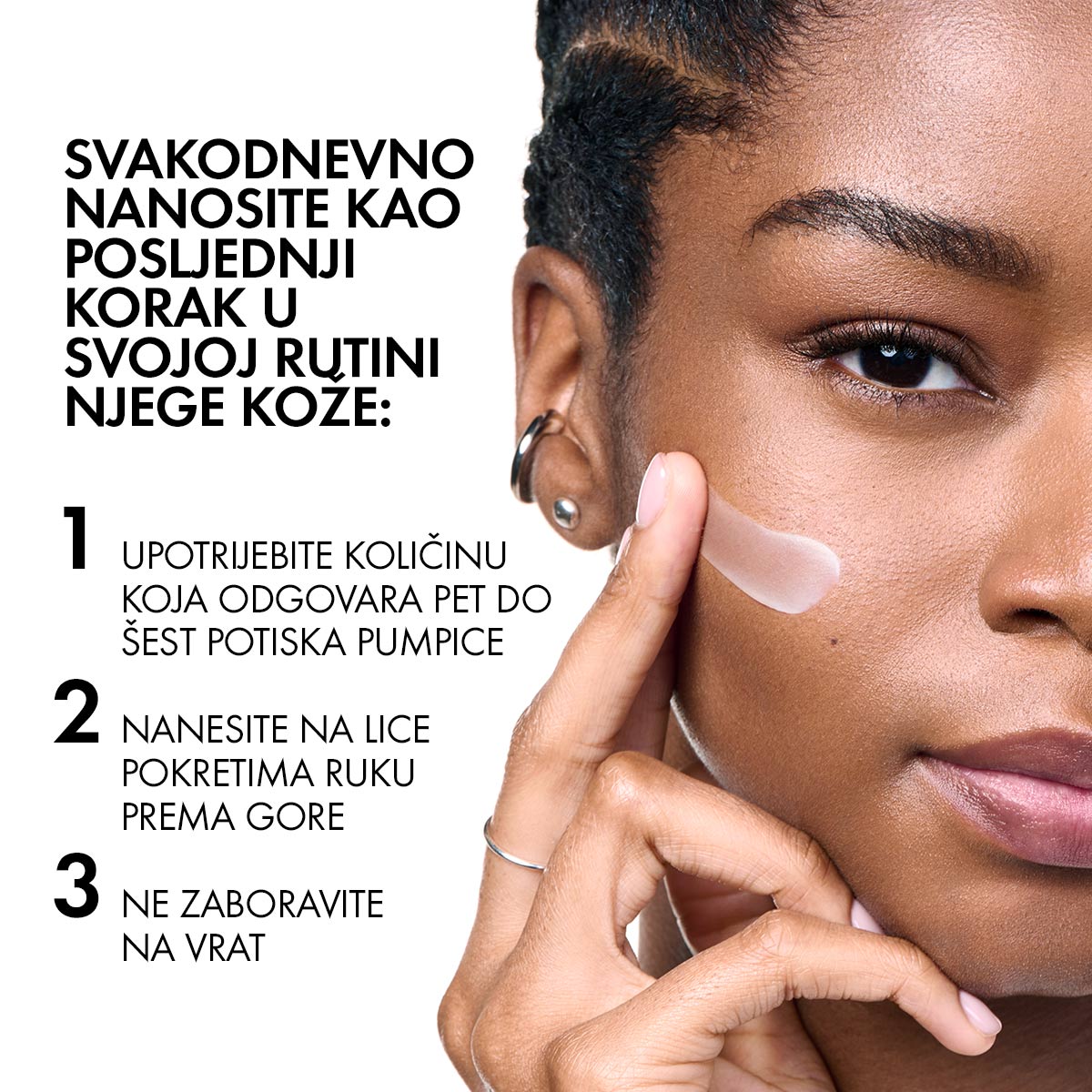 Ispitano pod oftalmološkom nadzorom. Sastav: AQUA /WATER, ALCOHOL DENAT., DIISOPROPYL SEBACATE, SILICA, ISOPROPYL MYRISTATE, ETHYLHEXYL SALICYLATE, ETHYLHEXYL TRIAZONE, BIS-ETHYLHEXYLOXYPHENOL METHOXYPHENYL TRIAZINE, BUTYL METHOXYDIBENZOYLMETHANE, GLYCERIN, CI 77891 / TITANIUM DIOXIDE, PROPANEDIOL, C12-22, ALKYL ACRYLATE/HYDROXYETHYLACRYLATE COPOLYMER, NIACINAMIDE, DROMETRIZOLE TRISILOXANE, PERLITE, TOCOPHEROL, CAPRYLIC/CAPRIC TRIGLYCERIDE, TEREPHTHALYLIDENE DICAMPHOR SULFONIC ACID, CI 77492 / IRON OXIDES, CAPRYLYL GLYCOL, PENTYLENE, GLYCOL, TRIETHANOLAMINE, HYDROLYZED RICE PROTEIN, CI 77491 / IRON OXIDES, TRISODIUM ETHYLENEDIAMINE, DISUCCINATE, SILICA SILYLATE, ACRYLATES / C10-30, ALKYL ACRYLATE CROSSPOLYMER, BUTYLENE GLYCOL, CI 77499 / IRON OXIDES, HYDROXYETHYLCELLULOSE, VITREOSCILLA FERMENT, DISODIUM EDTA, PARFUM / – FRAGRANCE Upotreba: Nanesite proizvod svakog jutra nakon dnevne njege kože. Dobro protresite prije nanošenja.