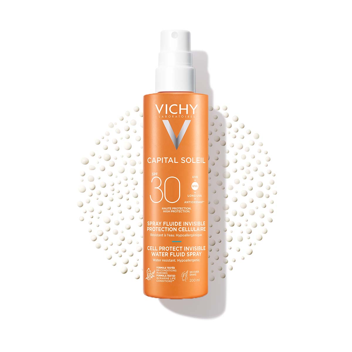Multi-protection asortiman za zaštitu od sunca, Capital Soleil Beach Protect sprej protiv dehidracije SPF30 pokreće UV filteri veoma visokog širokog spektra, otproni na faktore koji utiču na zaštitu od sunca na plaži uključujući so i hlor.