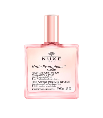 Nuxe Huile Prodigieuse® Florale čudesno suho ulje donosi miris proljeća u kombinaciji sa 7 dragocjenih biljnih ulja: Tsubaki ulje, arganovo ulje, ulje makadamije, ulje borača, ulje kamelije, ulje lješnjaka i ulje slatkog badema. Njeguje i hrani kožu tijela i lica te kosu. Kožu obavija neodoljivim mirisom grejpa, magnolije i mošusa. Sadrži najmanje 96,9 % sastojaka prirodnog podrijetla, a ne sadrži sastojke životinjskog podrijetla.