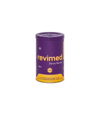 23,80KMREVIMED® Fe je prirodni visokokvalitetni dodatak ishrani na bazi dvovalentnog helatnog željeza (najsličnije željezu u organizmu), liofilizovane BIO matične mliječi, dehidriranog meda i vitamina C za pripremu napitka sa okusom šumskog voća. Namijenjen je osobama koje imaju manjak željeza, kao i svima koji žele popraviti ili u dužem periodu održavati dobru krvnu sliku i snagu organizma.