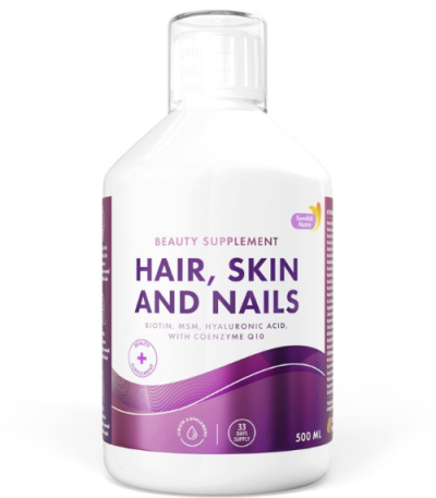 Hair, Skin & Nails će doprinijeti hidrataciji vaše kože, umanjit će upale i crvenilo i usporiti će starenje kože. Koristan je i kod problema sa aknama i drugih kožnih problema.