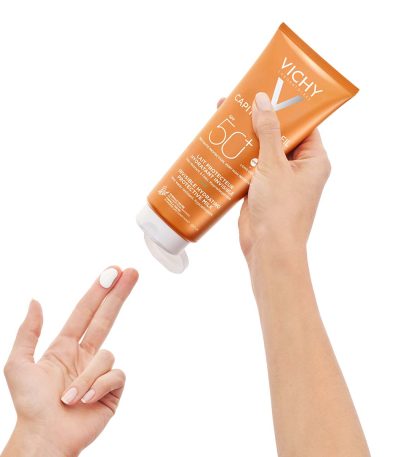 Za borbu protiv štetnih učinaka UV-zraka i za zaštitu dragocjenog genetskog kapitala kože Laboratoriji Vichy su u mlijeko dodali fotostabilan sustav filtra širokog spektra zaštite od UVA/UVB-zraka na bazi Mexoryla®.