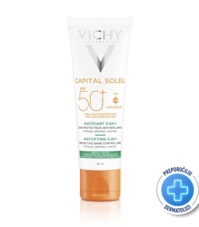 VICHY CAPITAL SOLEIL Matirajuća njega 3-u-1 protiv masnog sjaja SPF50+, 50 ml