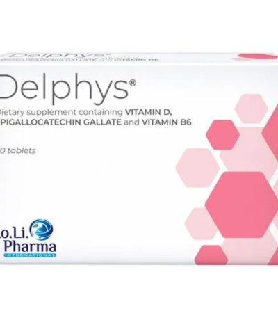 34,35KMDELPHYS je dodatak ishrani koji sadrži vitamin D, epigalokatehin galat (EGCG) i vitamin B6 i savjetuje se ženama koje su sklone razvoju fibroidnih promijena na maternici, kao što su miomi.Zahvaljujući aktivnim sastojcima doprinosi kontroli nastanka i razvoja mioma, smanjenju simptoma, očuvanju plodnosti, hormonskoj ravnoteži, poboljšavajući kvalitet života bez neželjenih efekata.Epigalokatehin galat (EGCG) pokazuje snažno antiinflamatorno, antioksidativno i antiproliferativno dejstvo.Primjena vitamina D stopira rast fibroida uterusa i doprinosi kontroli stanja, dozno-zavisno.