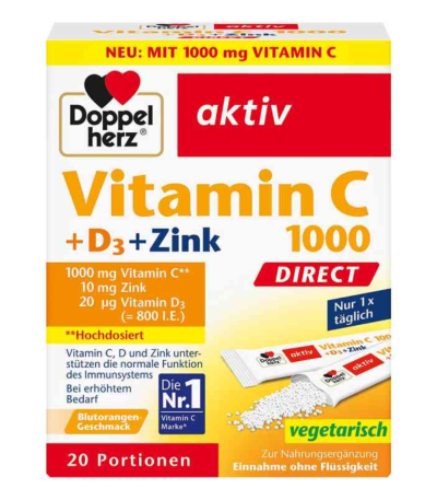 DOPPELHERZ AKTIV VITAMIN C 1000 + D3 + CINK DIRECT a20
