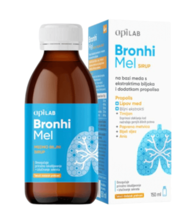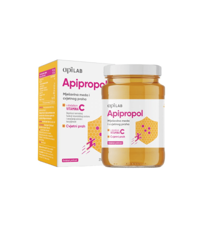Tekući dodatak na bazi meda s ekstraktima biljaka i dodatkom propolisa.