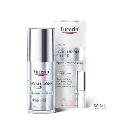 Eucerinova jedinstvena kombinacija visoko i niskomolekularnih hijaluronskih kiselina, glicin-saponina i enoksolona vidljivo popunjava čak i duboke bore. Visokomolekularna hijaluronska kiselina poboljšava hidraciju i zaglađuje najdublje slojeve kože, dok niskomolekularna hijaluronska kiselina, koja je 40 puta manja1, prodire dalje u slojeve kože epiderme gdje nastaju dublje bore. Antioksidans glicin saponin podržava proizvodnju hijaluronske kiseline u sloju kože gdje nastaju najdublje bore i štiti od slobodnih radikala. Enoksolon štiti hijaluron kože od propadanja.