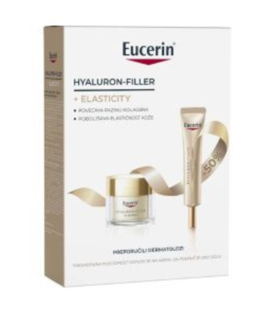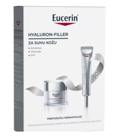Eucerin Anti Age Promo pakiranje sadrži Eucerin Hyaluron-Filler dnevna krema za suhu kožu s SPF 15 i UVA zaštitom 63485 + Eucerin Hyaluron-Filler krema za područje oko očiju 63536.